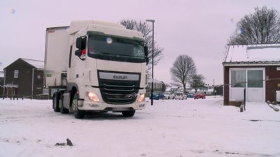 Heavy vehicle recovery team tackles a stuck 44-ton lorry on an embankment. RAC tech Mark rescues a stranded driver on a windy motorway bridge